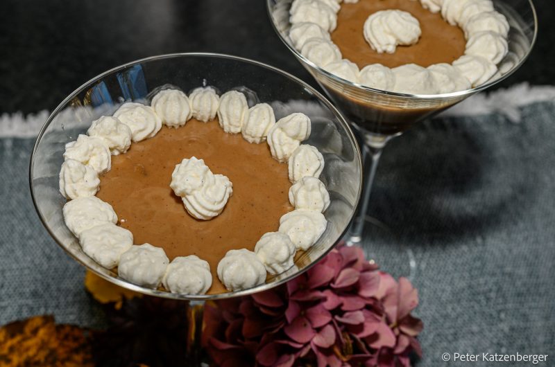 Diese Espresso-Maronen-Creme vereint das kräftige Aroma von Espresso mit der sanften Süße der Maronen. Das ist ein feines Dessert für kalte Tage, das Wärme und Eleganz in jedes Glas bringt.