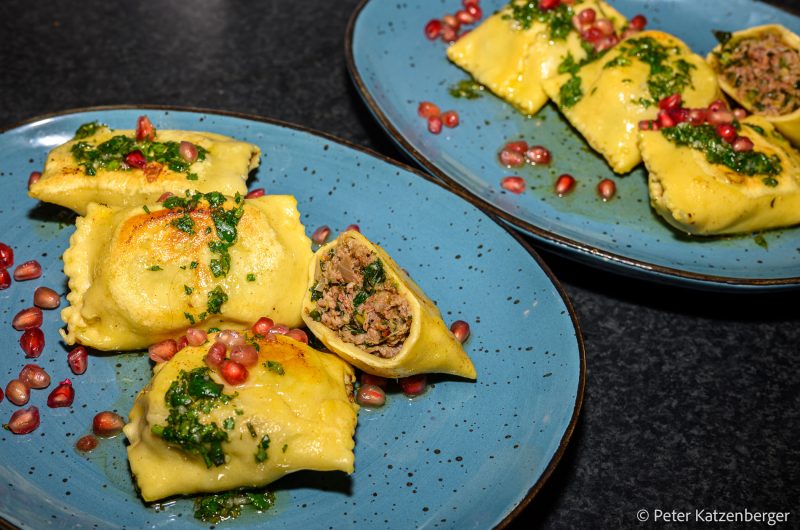 Meine Maultaschenfüllung besteht aus einem orientalisch gewürzten Fleischteig. Das Ergebnis ist eine spannende Mischung aus Vertrautem und Neuem. Sie zeigt, wie gut sich regionale Küche mit internationalen Einflüssen verbinden lässt.