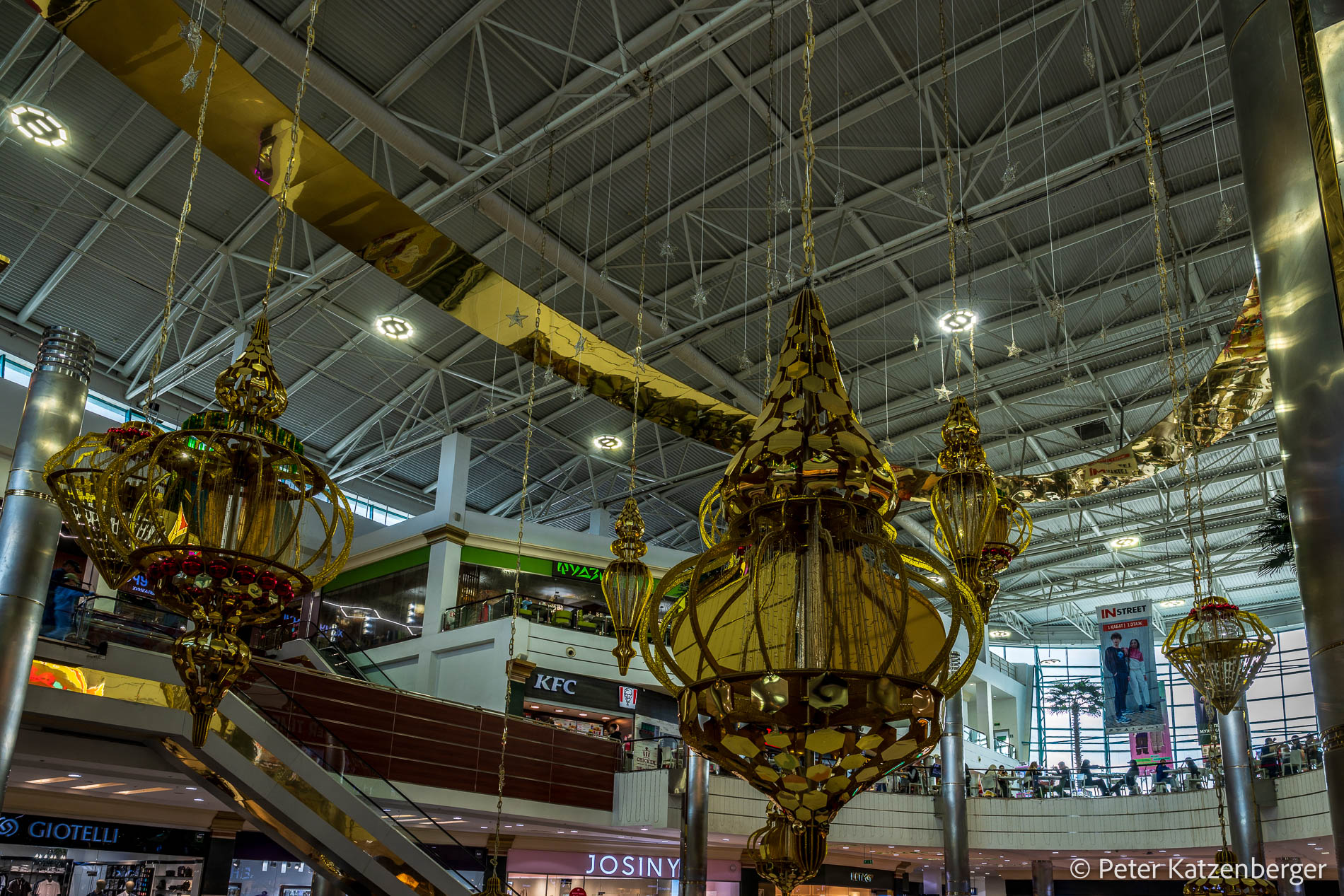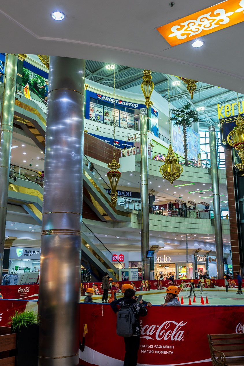 Hinter der Kathedrale befindet sich die große Keruen Mall, mit einer Eislaufbahn, um die sich die Geschäfte gruppieren. Seht mal, wie modern die Mall ist.