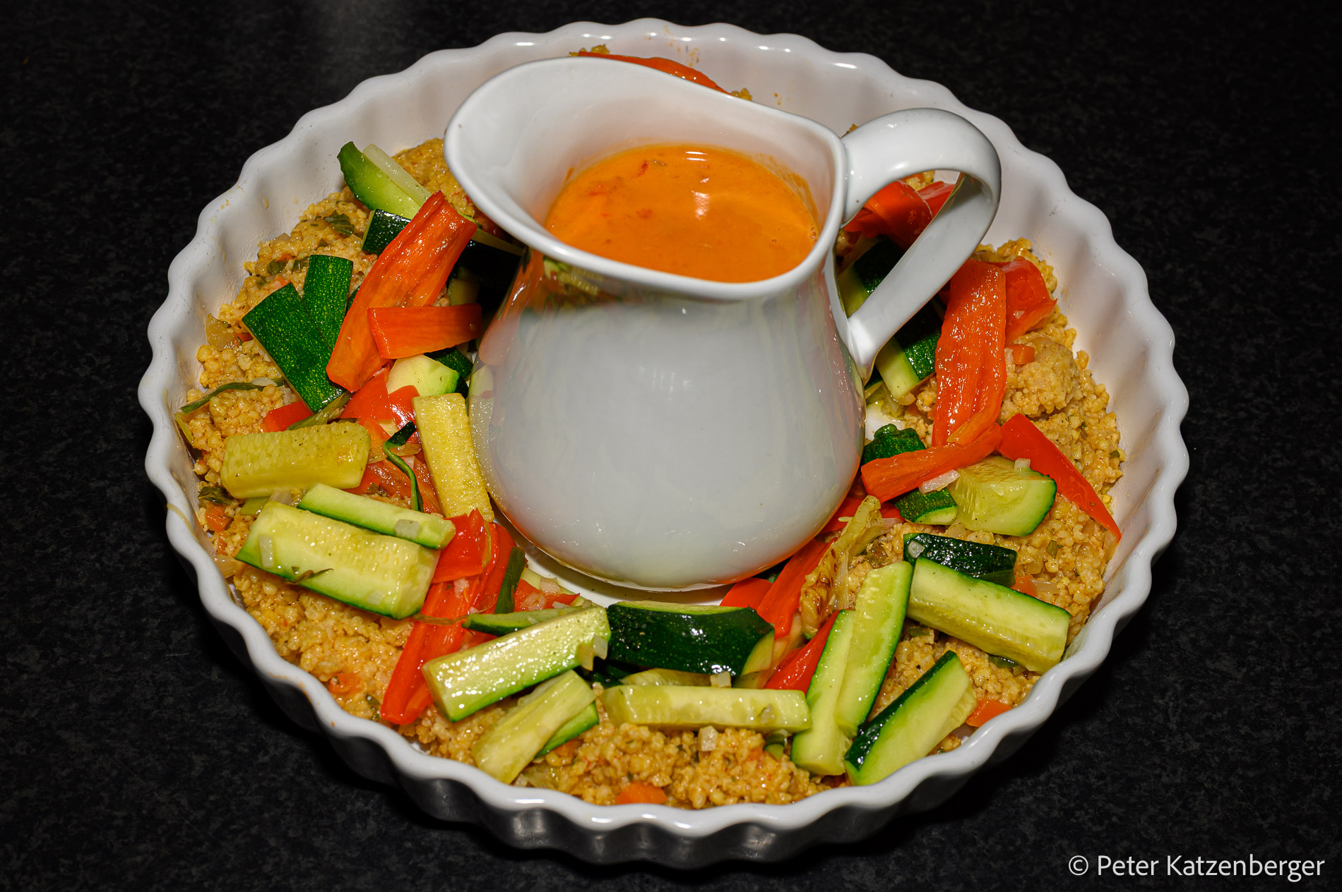 Hirse mit Gemüse und einer Erdnusssoße (Bassi Salté)