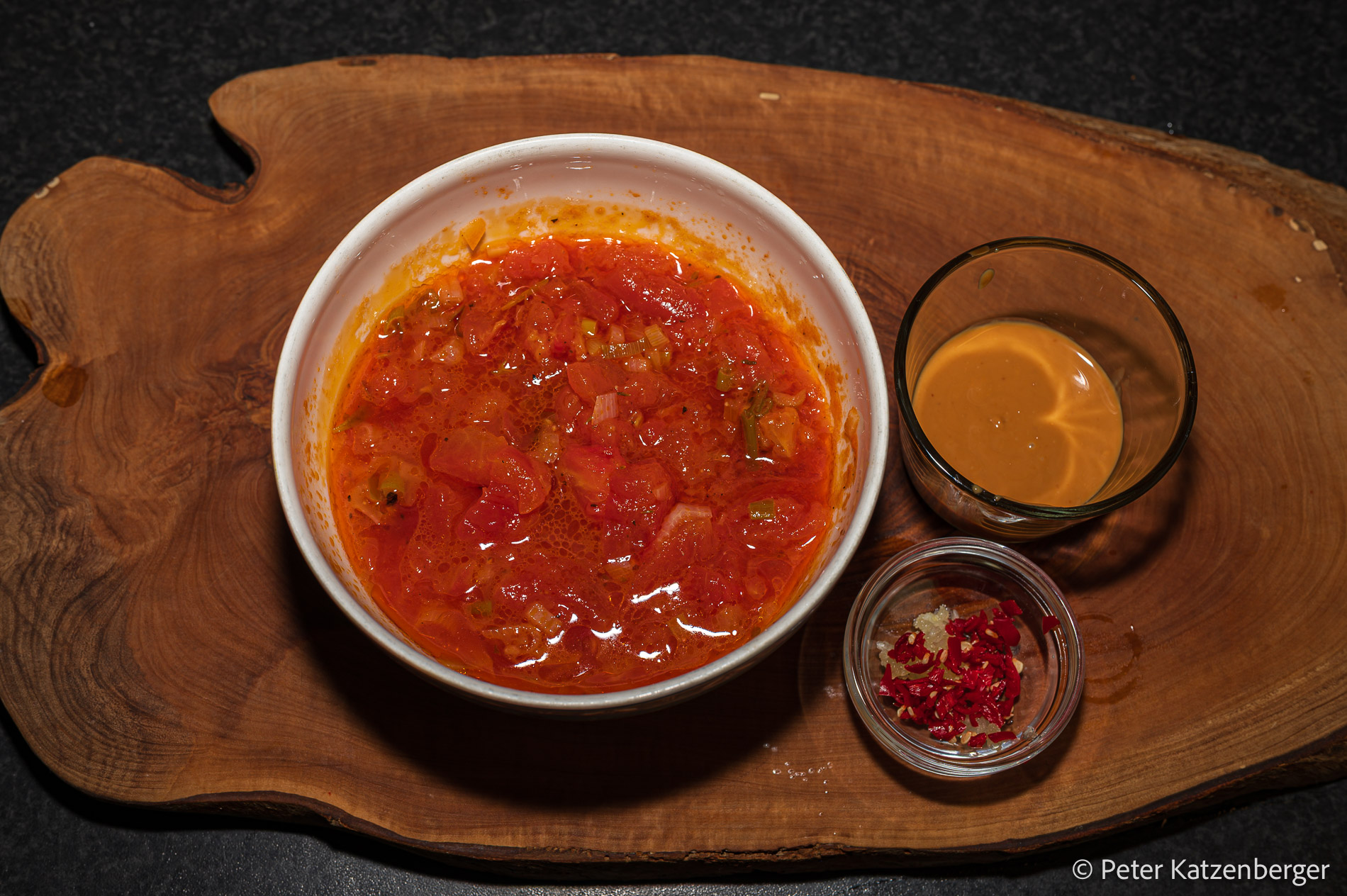 - 300 ml Tomatensoße Rest vom Vortag (frische Tomatenwürfel, Schalotte, Kräuter)