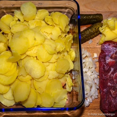 "Leckeres für jeden Tag" sucht Seelenwärmer/Comfort Food. Kartoffeln in jeglicher Form gehören hier dazu. Offensichtlich kann sich Deutschland vollständig selbst mit Kartoffeln versorgen. Das ist beruhigend, denn ich mag die regionalen Kartoffeln sehr. Baden-Württemberg ist allerdings nicht das typische Anbaugebiet für die leckere Knolle. Doch mein Lieblingsgärtner hat sie fast immer im Angebot. Schwäbinnen fällt es leicht, die Zeiten ohne regionale Kartoffeln zu überbrücken. Dann gibt es eben Spätzle. Bei der Sättigungsbeilage habe ich ohnehin kein Problem mit der Regionalität. Ich mag Reis und Hirse sehr gerne. Darauf wollte ich nicht verzichten.Nun geht es bei mir um die Bratkartoffel. Bratkartoffeln sind ein Wohlfühlgericht für mich. Die gehen immer. Wir waren im Frühsommer 2025 mit dem Senior Expert Service in Kasachstan. In einem Restaurant gab es Bratkartoffelpfännchen mit Rinderfiletstreifen. Diese Pfännchen schmeckten so lecker, die musste ich in mein „Kochrepertoire“ aufnehmen. Das tue ich heute. Auch erinnert mich dieses Gericht an die ereignisreiche Zeit in Kasachstan. Kennt ihr das? Manchmal möchte man sich mit einem Gericht in eine andere Zeit oder an einen anderen Ort zurückversetzen.