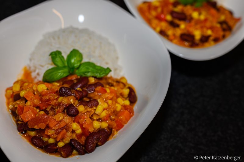 Ein veganes Chili sin Carne lässt keine Wünsche offen. Es schmeckt mit den frischen Zutaten fruchtig und würzig. Zudem ist es super rasch zubereitet.