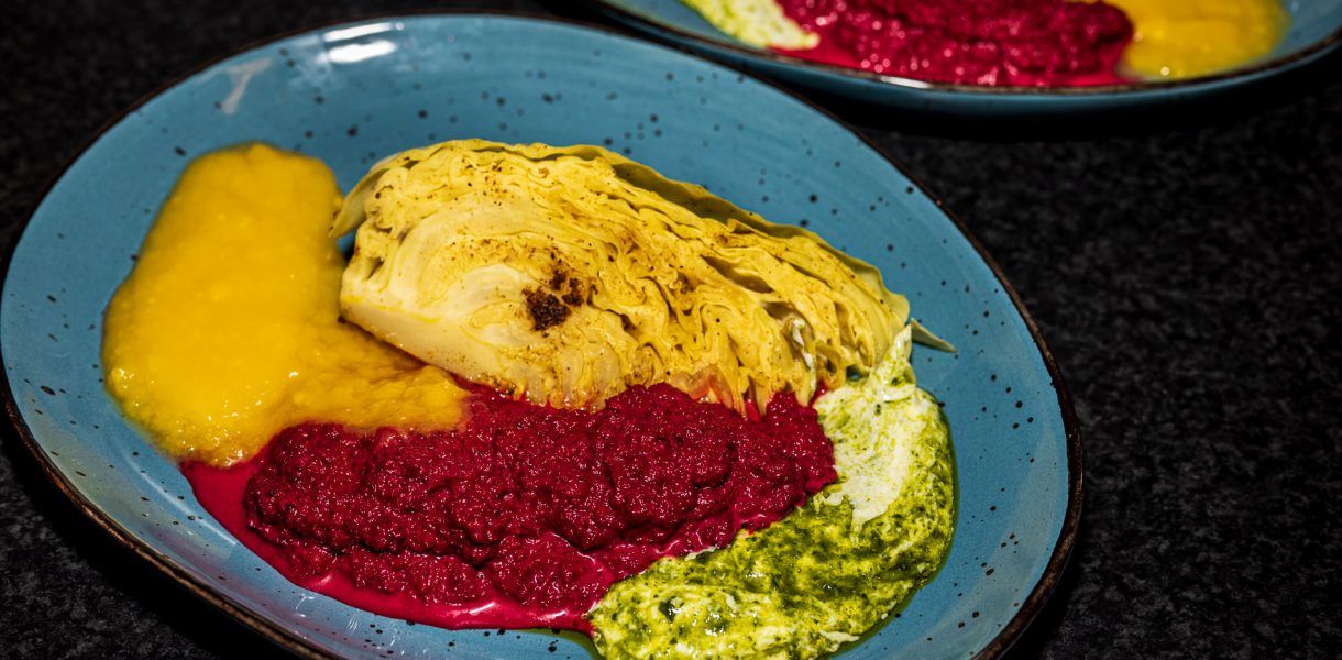 In Wein gekochte Curry-Spitzkohlecken sind ein leckeres und gesundes Gericht. Zusammen mit drei cremigen Dips ist dieses Rezept im Winter ein Muss. Es macht gute Laune und schmeckt.