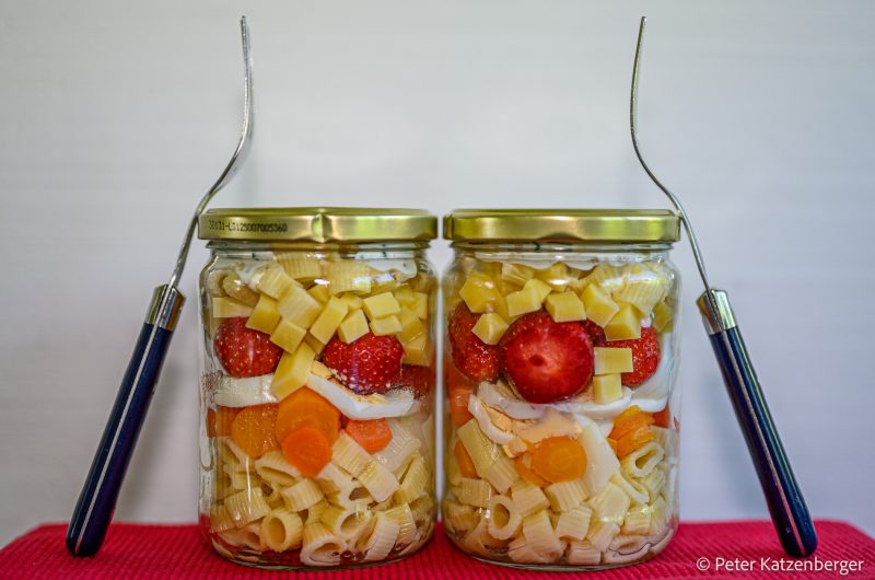 Ihr braucht eine sättigende Mahlzeit für unterwegs? Sie soll sich schnell und einfach zubereiten lassen? Dann ist der Nudelsalat im Glas genau das Richtige für euch. Er wird allen schmecken.