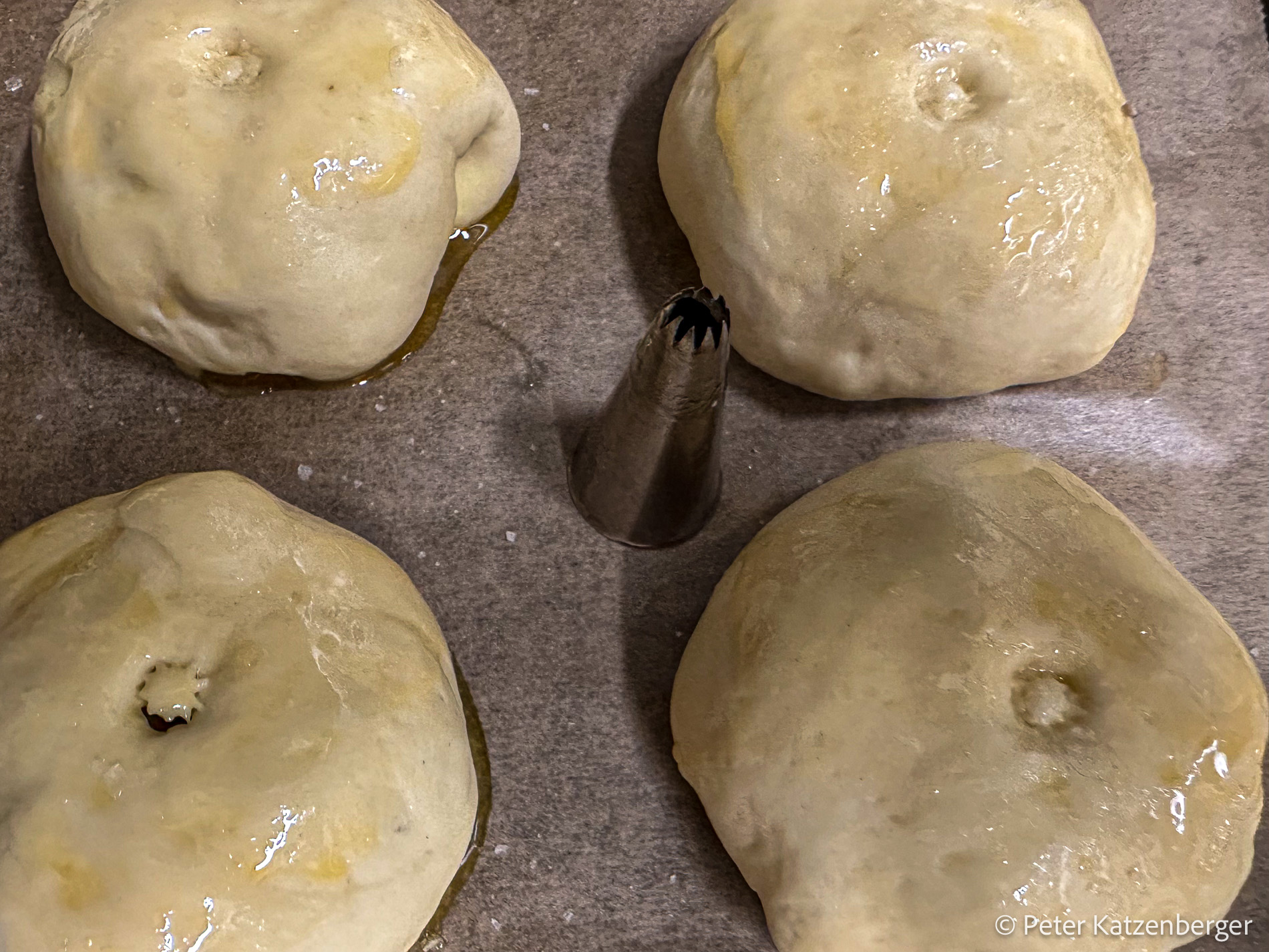 - Die Brötchen mit einer Spritztülle anstechen (ist notwendig als "Kamin").