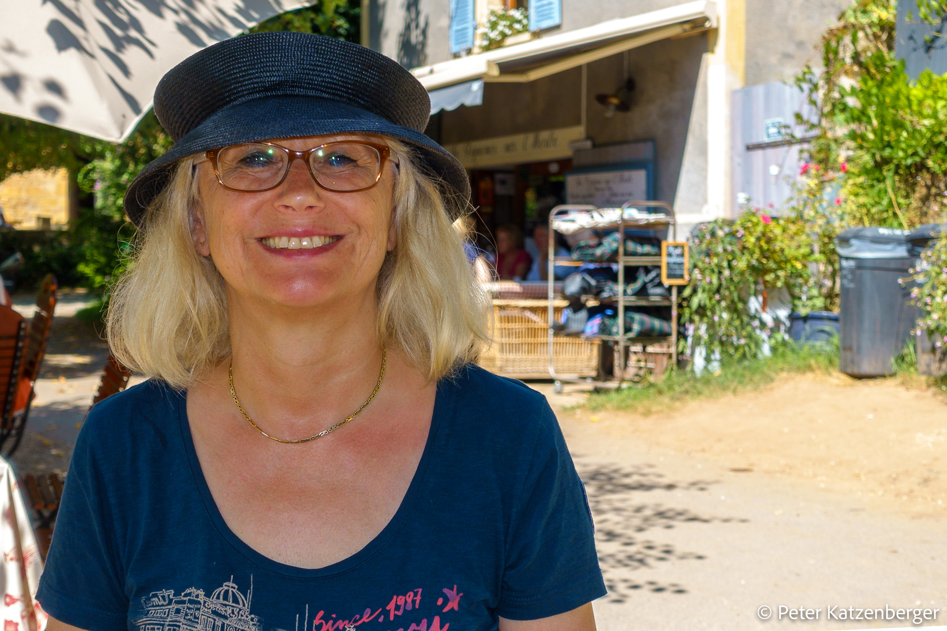 Die Krimiserie des britischen Autor Martin Walker spielt hier, der Ort heißt dort Saint-Denis. Le Bugue ist ein zauberhaftes Örtchen mit Wochenmarkt am Dienstag und Samstag und Supermärkten aller Art. Hier locken ein Kaffee und ein Vesper. Zufrieden mampfen wir am Ufer und genießen die Sonne. Gestärkt klappt die restliche Fahrt, nochmals 8 km, richtig gut. Abends schmerzen die Muskeln und eine heiße Dusche entspannt uns wieder.