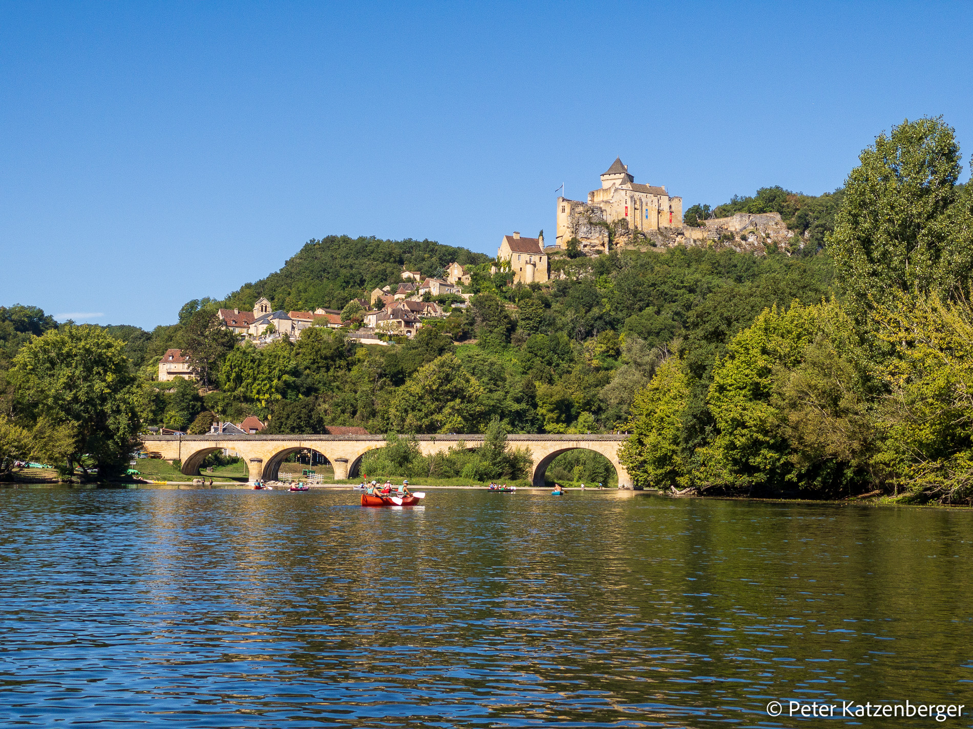 Vorbei geht es zunächst an La Roque Gageac, dem Städtchen, das sich an einer Felswand am Ufer entlang anschmiegt. Und schon taucht Castelnau auf, die trutzige Burg, die im 12. Jahrhundert zu militärischen Zwecken erbaut wurde. Wenig später entdecken wir Beynac, jene Burg, die majestätisch das Tal beherrscht. Wir sind überwältigt!