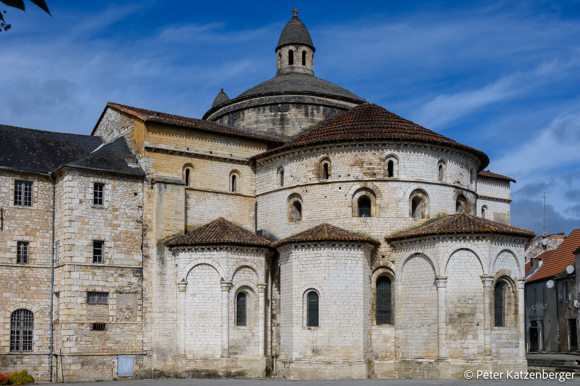 In Souillac, einer Kleinstadt an der Dordogne, legen wir einen morgendlichen Stopp ein. Die Abteikirche St. Marie ist ein absolutes Muss, mit den atemberaubenden Reliefs am Hauptportal.