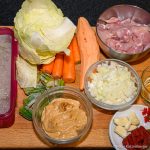 - Danach kommen die Möhren, die Süßkartoffelwürfel und die Kohlstreifen hinzu.