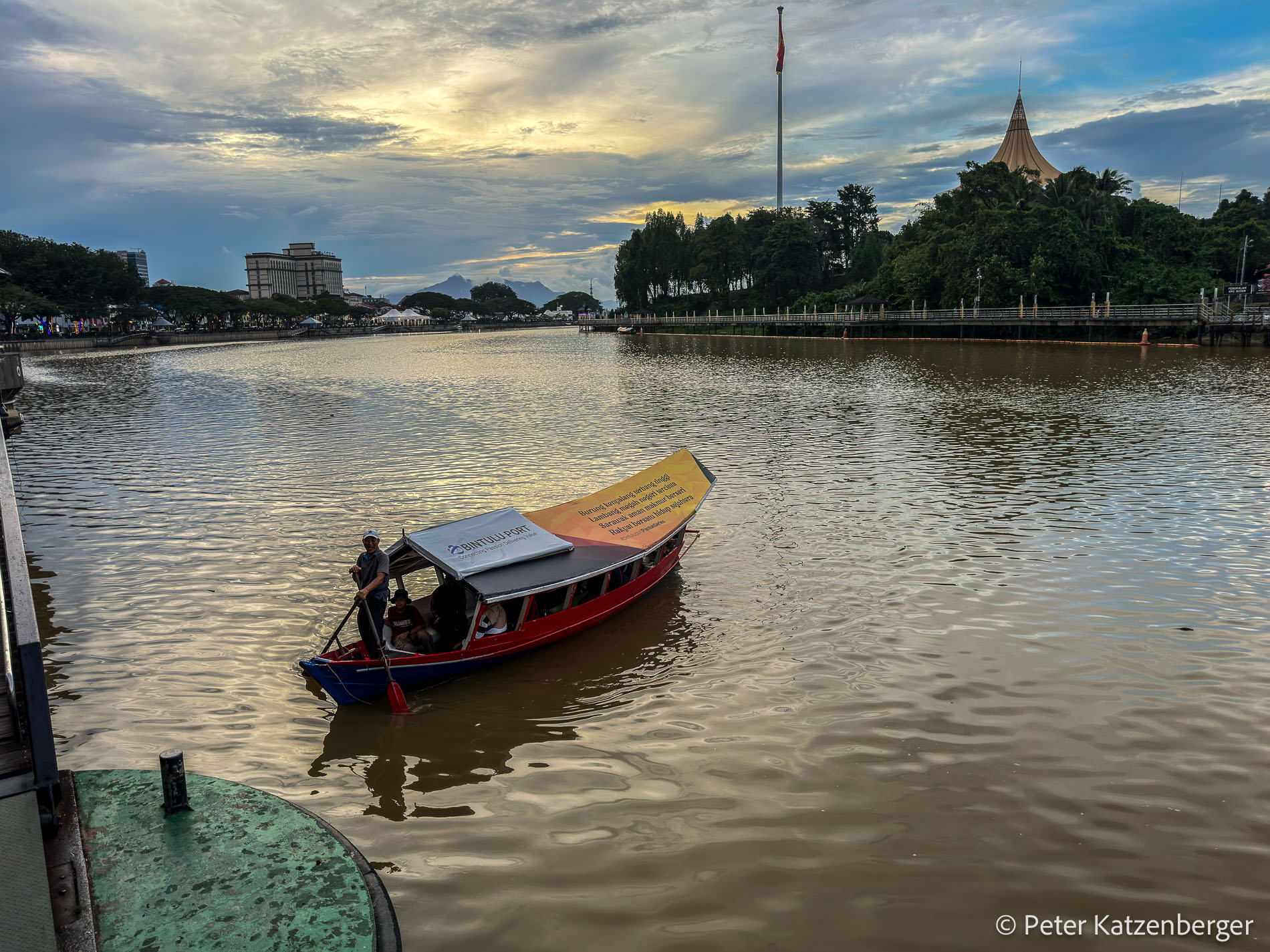 Der Flug von Georgetown nach Borneo frisst Zeit. Zeit haben wir genügend, um uns auf Kuching, der Hauptstadt des malayischen Bundesstaates Sarawak auf der Insel Borneo zu freuen. Kuching ist wiederum eine kulturell vielfältige Stadt, wie unsere vorangegangenen Städte. Die Lage am Fluss Sungai Sarawak ist einmalig.