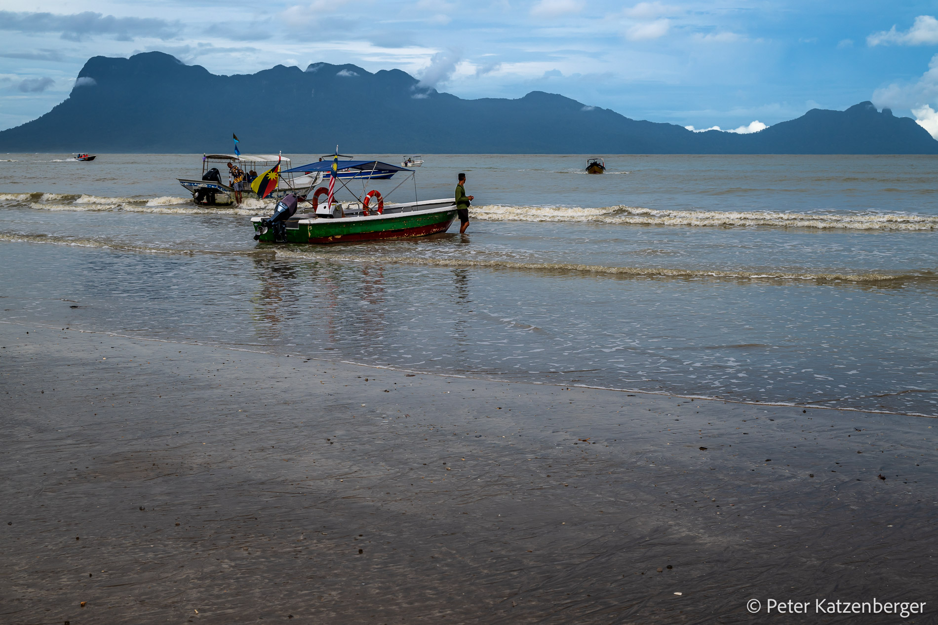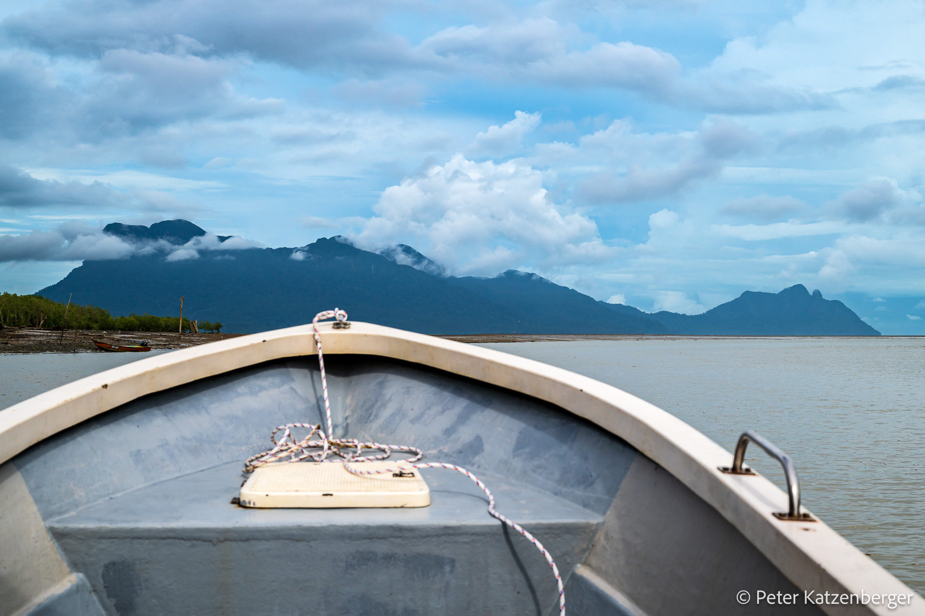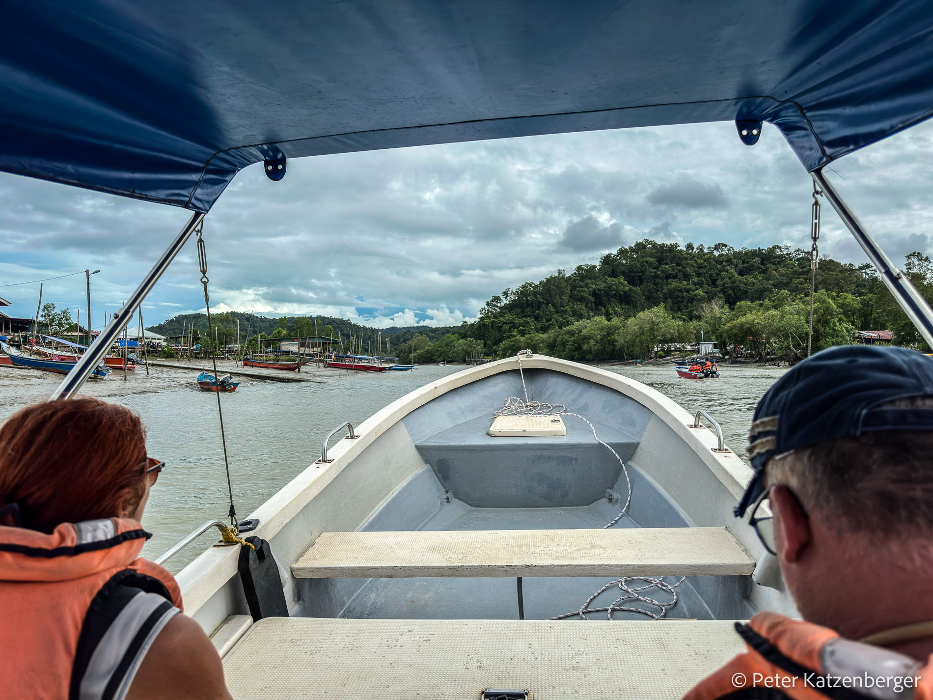 „Mit dem Bus geht es zum Anleger vom Baku National Park. Wir werden in kleine Boote verfrachtet und starten auf dem Sungai Tabo Fluss Richtung Meer.