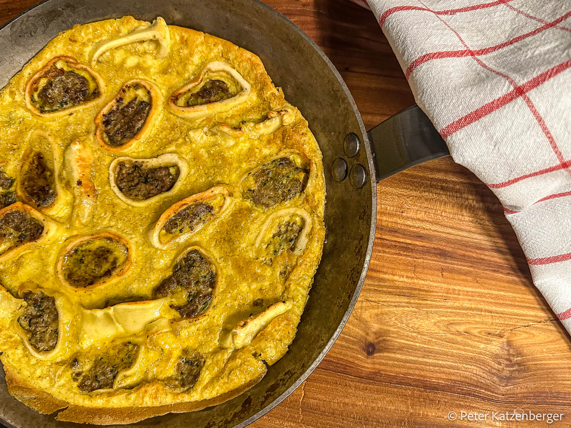 Zwei Personen werden von 4 solcher Maultaschen satt. Schaut, auch ein Maultaschen-Omlette (3-4 Eier, 50 ml Sahne) schmeckt super!