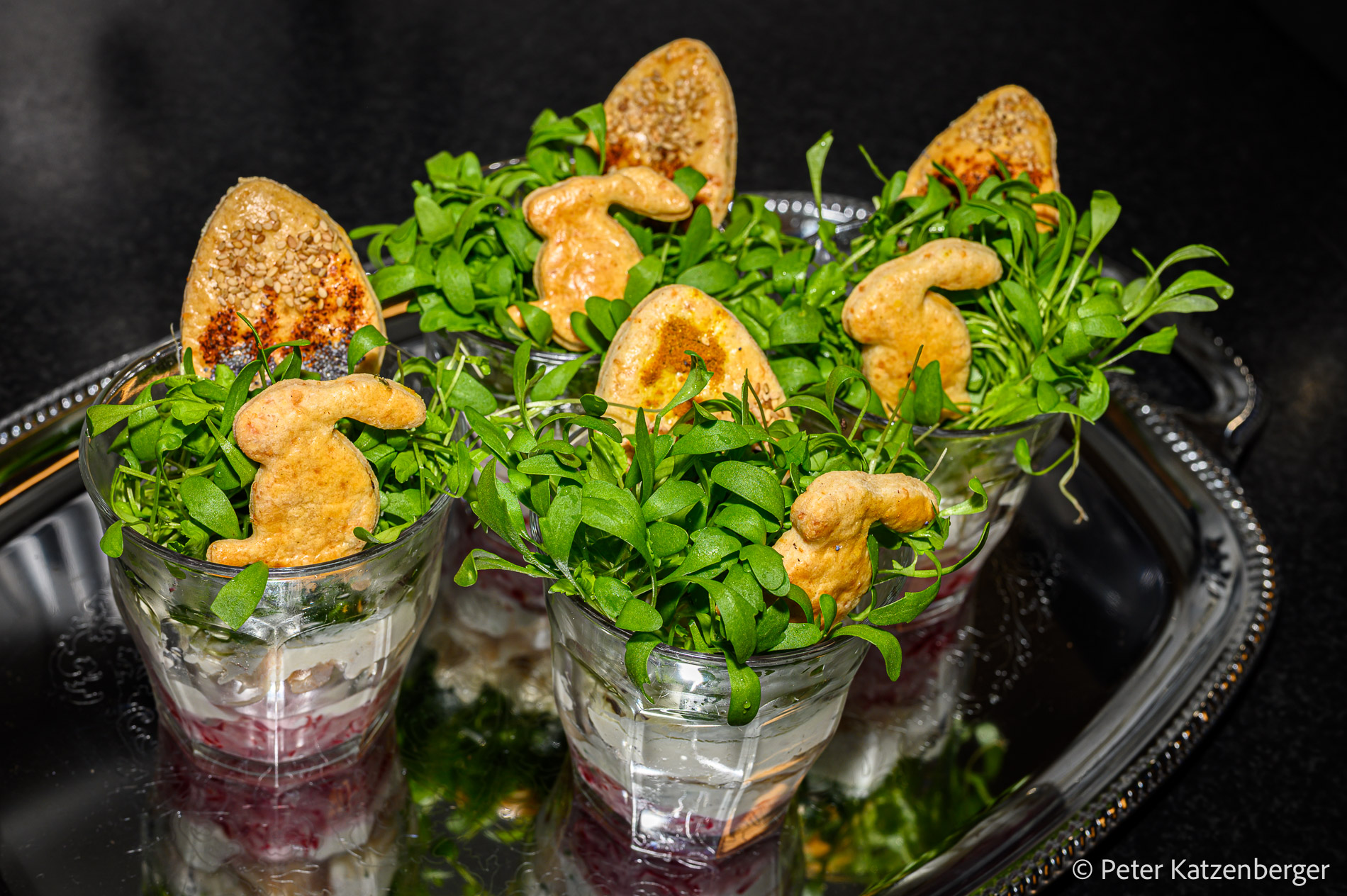 Es ist Palmsonntag. Gerade in Zeiten von Krieg und Leid in der Ukraine und im Nahen Osten frage ich mich, welche Botschaft uns Ostern heute vermitteln kann. Die Ostergeschichte spielt historisch in einer Welt voller politischer Gewalt, Besatzung und religiöser Konflikte. Dennoch wird in der Bibel überliefert, dass nicht Gewalt und Tod, sondern die Auferstehung die zentrale Botschaft ist. So hoffe ich, dass diese Botschaft auch heute noch gilt:– Gewalt nicht mit Gewalt zu beantworten– Versöhnung statt Vergeltung zu suchen– die Hoffnung zu bewahren, auch wenn alles hoffnungslos erscheint– Ultimaten durch Verhandlungen ersetzen– Gegenseitiges Mitgefühl zeigen statt fortlaufend neues Leid zuzufügen.Osterbrunch und gemeinsame Essen in der Familie symbolisieren für mich konkrete Formen der Osterbotschaft. Wir sitzen am Tisch, hören einander zu, teilen Zeit miteinander und zeigen uns gegenseitige Wertschätzung.Die großen politischen Konflikte lassen sich nicht am Esstisch lösen. Aber Mitmenschlichkeit beginnt genau dort. Meine kleine Vorspeise zum Osterbrunch oder -essen symbolisiert für mich ein Stück gemeinsame Hoffnung.Meine erste Idee waren salzige Osterkekse. In meinen Ostergläschen habe ich fein geraspelte Radieschen mit Frühlingszwiebelfrischkäse und frisch geräucherter Forelle kombiniert. Obenauf sorgt die frische Kresse für eine frühlingshafte, leicht würzige Note. In der Kresse habe ich ein Häschen und ein gebackenes Osterei versteckt.Diese unkomplizierte, aber besondere Vorspeise eignet sich ideal für einen entspannten Osterbrunch mit Familie und Freunden.