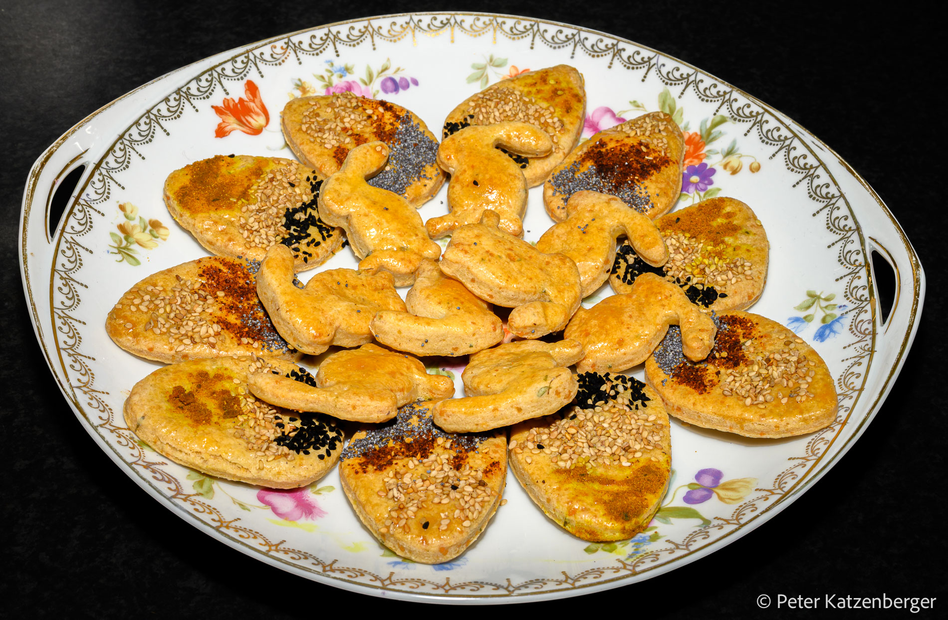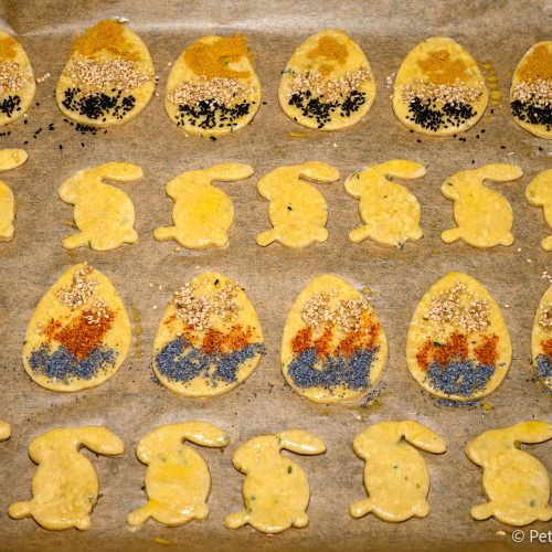 - Beliebig mit Sesam, Mohn und Gewürzen bestreuen.