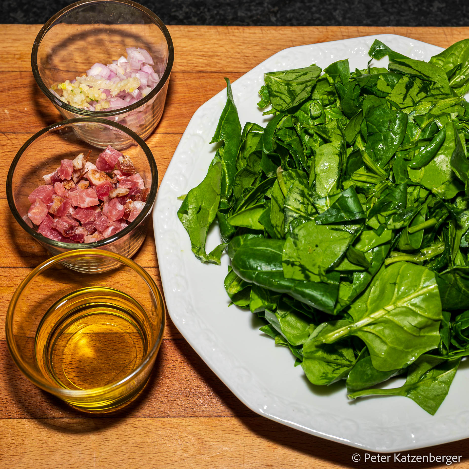 - 200 g Spinat geputzt, gewaschen, in grobe Quadrate geschnitten