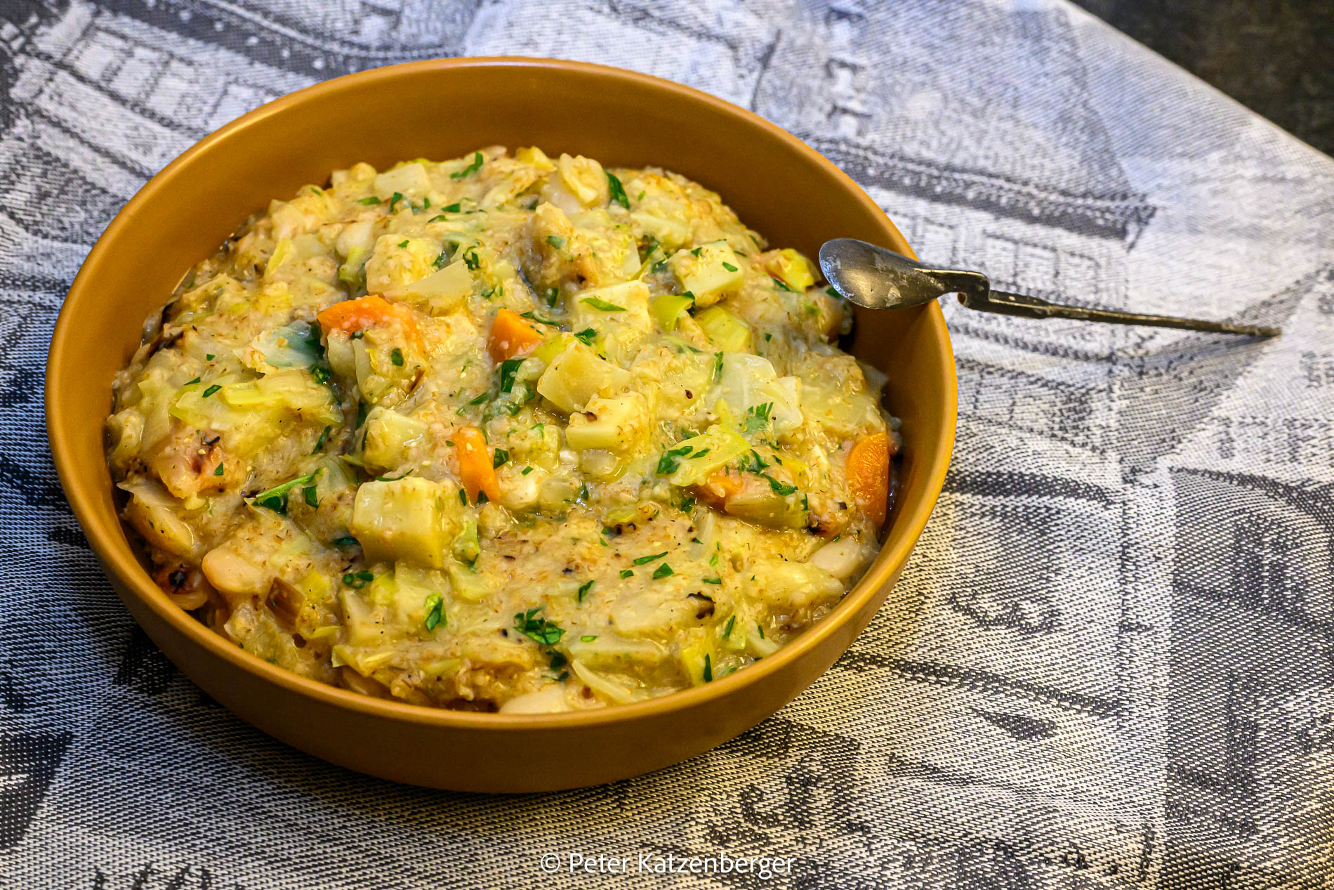 Es ist wieder soweit! Im Januar beginnt der sogenannte Veganuary. Aber was ist das eigentlich? Das ist eine Kampagne aus Großbritannien. Sie ruft seit 2014 dazu auf, sich im Januar rein pflanzlich, also vegan, zu ernähren. Eine vegane Ernährung ist eine der effektivsten Maßnahmen, um die Umwelt zu schützen, Tierleid zu vermeiden und die Gesundheit zu verbessern. Ich mache mit. Probiert es doch auch mal aus.Mit dem Rezept vom Pilaw nahm ich euch ins 13. Jahrhundert mit. Nun geht es ins Jahr 200 v. Christus zu den Römern. Schon Plautus, ein Komödiendichter, beschimpfte die Römer als "pultiphagi" – Puls-Fresser. Fleisch aßen die Römer selten und Fisch gab es vorwiegend in den Küstengebieten. Puls war der Inbegriff für das Essen der Römer*innen. Schon Cato pries es als das wahre Essen! Was ist nun Puls? Es ist eine Art Eintopf mit Gemüse der Saison, z.B. Kohl, Lauch, Kichererbsen, Gerste, Bohnen oder Linsen. Dieser Eintopf wurde auch saisonal gewürzt. Puls kann auch süß zubereitet werden, dann ist er eher breiartig.Viele von uns wollen nicht auf ein Müsli zum Frühstück verzichten. Dieses schmeckt allen Müslifreund*innen jeden Tag. Das Obst der Saison ändert immer ein wenig den Geschmack des Müslis. So ist das auch mit dem Puls. Also probiere ich mal aus, ob mir herzhafter Puls schmeckt. Die Bohnen sollten am Vorabend eingeweicht werden. Am nächsten Tag werden Zwiebel, Knoblauch und das Gemüse klein geschnitten und im Olivenöl in einem Topf oder Schneeellkochtopf angebraten. Nun kommen die eingeweichten Bohnen, das Getreide und die trockenen Gewürze (Pfeffer, Kreuzkümmel, Weinraute, Salz) hinzu. Das Ganze wird mit wenig Gemüsebrühe aufgegossen. Falls ein Schnellkochtopf vorhanden ist, klappt der Garprozess rasch. Zum Schluss werden die frischen Gewürze nach Belieben untergerührt. Ein Gewürz fehlt noch, das nicht in die vegane Küche passt. Falls ihr am Veganuary teilnehmt, lasst ihr dieses einfach weg. In der römischen Küche wird mit Garum, einer Fischsoße, gewürzt. Eine asiatische Fischsoße passt oder auch Colatura di Alici, einer Würzsoße aus Sardellen aus Cetara an der Amalfiküste. Nachtrag: Dieser Gemüse-Getreidebrei ist wunderbar sättigend. Bei uns wird es nun ab und zu Puls geben.