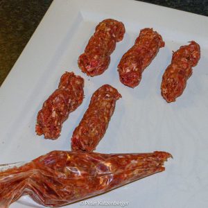 - Kleine Qebapa aus dem Spritzbeutel drücken.