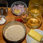 - Dann den Reis ebenfalls zufügen und kurz anschwitzen.