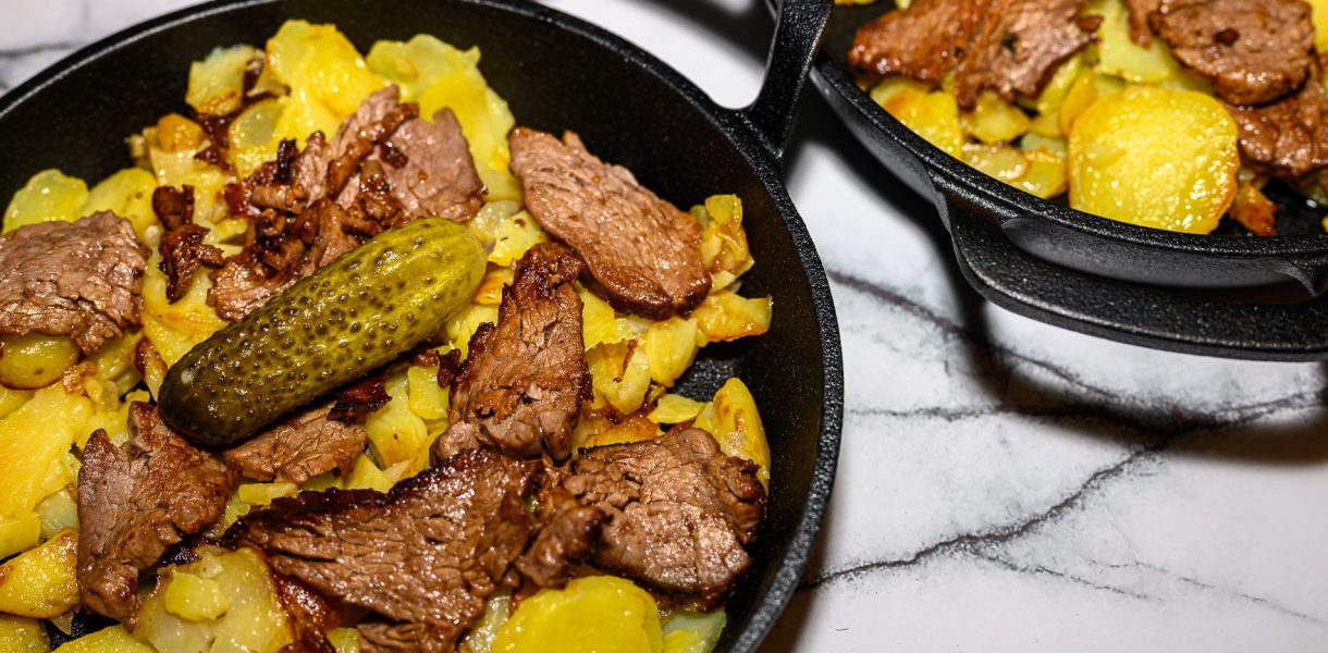 Bratkartoffelpfännchen mit Rinderfiletstreifen