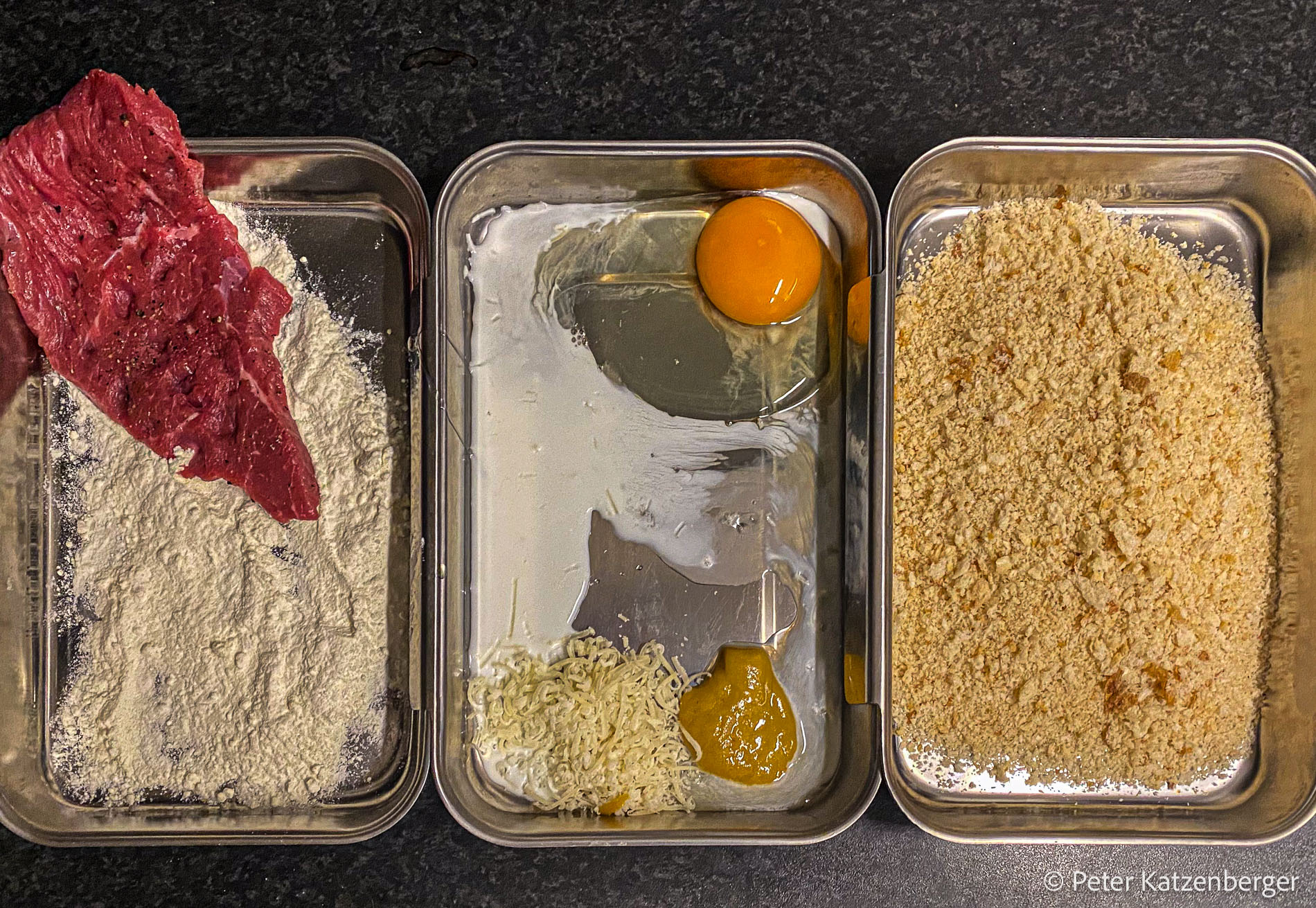 Keyword Rinderhüfte, Semmelbrösel, Tomatensoße