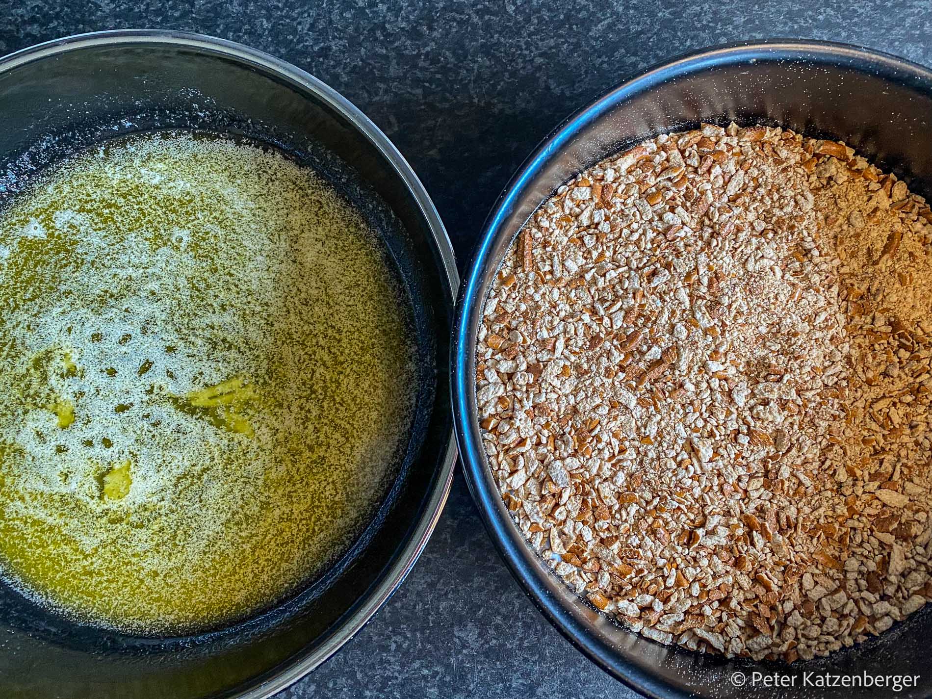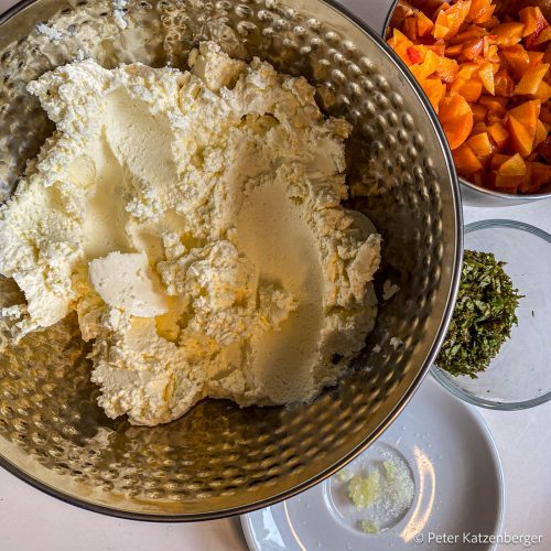 Muss ein Cheesecake süß sein? Kennt ihr das? Ihr habt eine Kochidee. Ihr besorgt die Zutaten und dann geht es ab in die Küche. Bei mir war es die Idee eines pikanten Cheesecakes zum Tag des Cheesecakes. Mein Estragon vom Balkon sollte einen besonderen Auftritt bekommen. Ich habe Frischkäse, gehackte Estragonblättchen und Aprikosenstückchen mit einem Boden aus Salzbrezelbröseln in Gläschen geschichtet. Okay, der Pilotversuch schmeckte ganz gut, aber so richtig vom Hocker riss er meinen Mann und mich nicht.Aber bekanntlich ist ja jeder Versuch lohnenswert! Also auf zum zweiten Versuch! Dieses Mal sollte es ein richtiger Cheesecake werden. Der Bröselboden gefiel mir. Ändern wollte ich die Frischkäsemasse. Nun würzte ich den Frischkäse mit frischer Minze vom Balkon, Knoblauch und Aprikosenstückchen. So schmeckt mein pikanter Cheesecake meiner Meinung nach himmlisch.Trotzdem werde ich weiter experimentieren. Die Bröselmasse ist noch zu grob. Meine Idee war, dass noch knusprige Stückchen dabei sind. Also das nächste Mal brösele ich die Salzbrezeln fein. Auch die Frischkäse-Aprikosen-Minz-Masse könnte noch höher sein. Das nächste Mal nehme ich 600 Gramm Frischkäse.Fazit: Mein pikant gewürzter Cheesecake eignet sich hervorragend als Vorspeise. Er lässt sich auch prima in Kuchenecken schneiden.